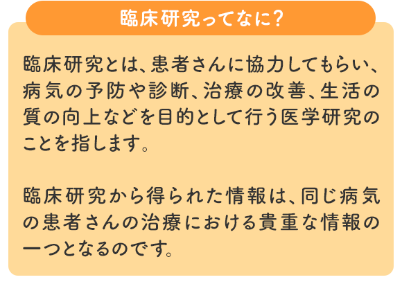 年齢や症状などの条件によっては、臨床研究という形で、治療や診察を受けることができるものもあるのです。
